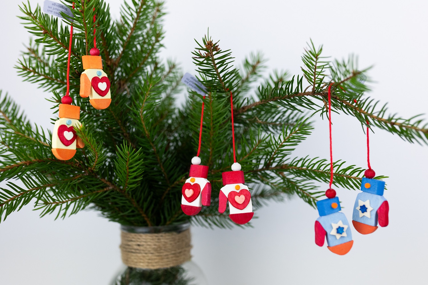 - Flauschige Handschuhe in drei wunderschönen Farbkombinationen als besonderer Baumschmuck.