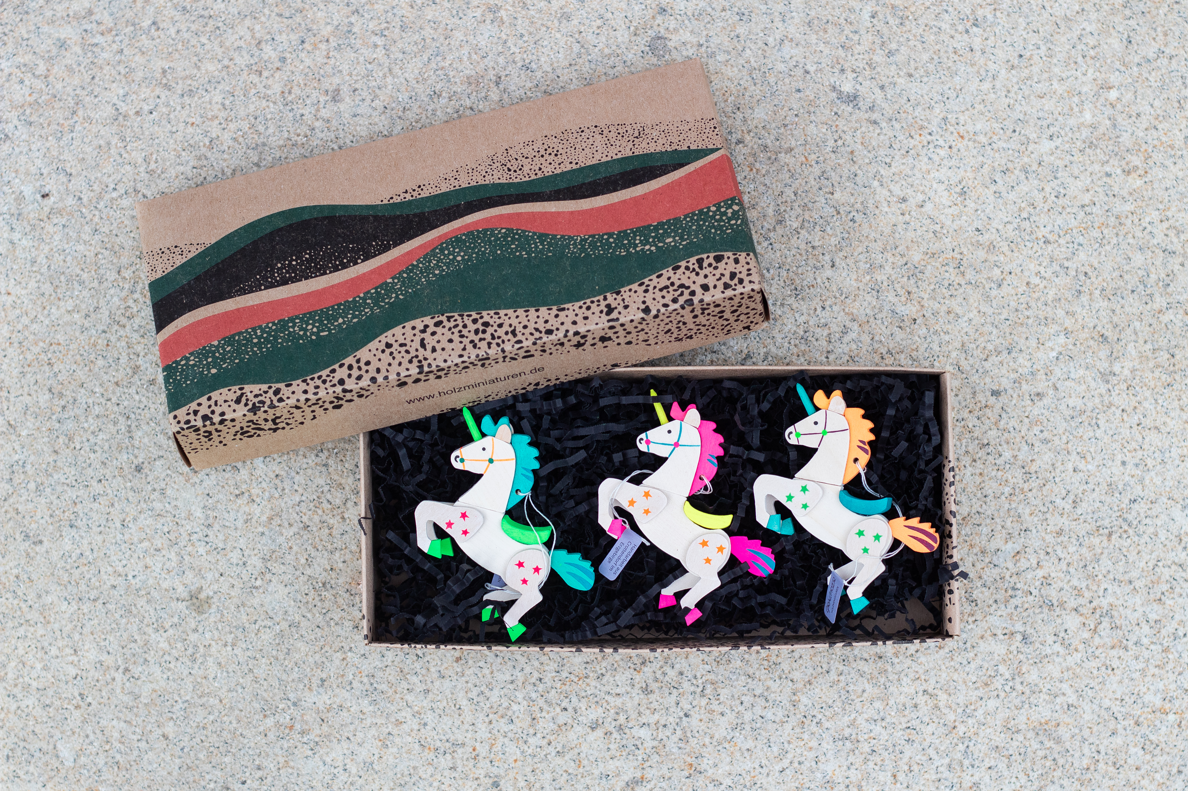 Dazu erhalten Sie eine Grußkarte sowie ein kleines Leporello mit Informationen zu Herstellung und Verarbeitung der Produkte. Die Box wird von uns mit ganz viel Liebe verpackt – nachhaltig und stilvoll zugleich. In der hochwertig bedruckten Geschenkverpackung aus Kraftkarton wird der Baumschmuck eingehüllt in feinstes Seidenpapier auf die Reise zu Ihren Liebsten geschickt. Alles garantiert plastikfrei!