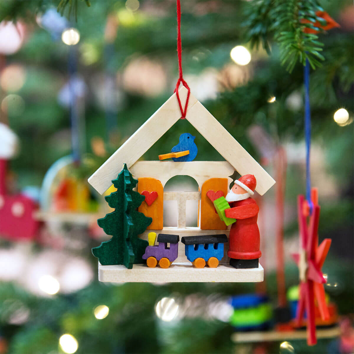 - Christbaumschmuck 'Haus Weihnachtsmann mit Eisenbahn'