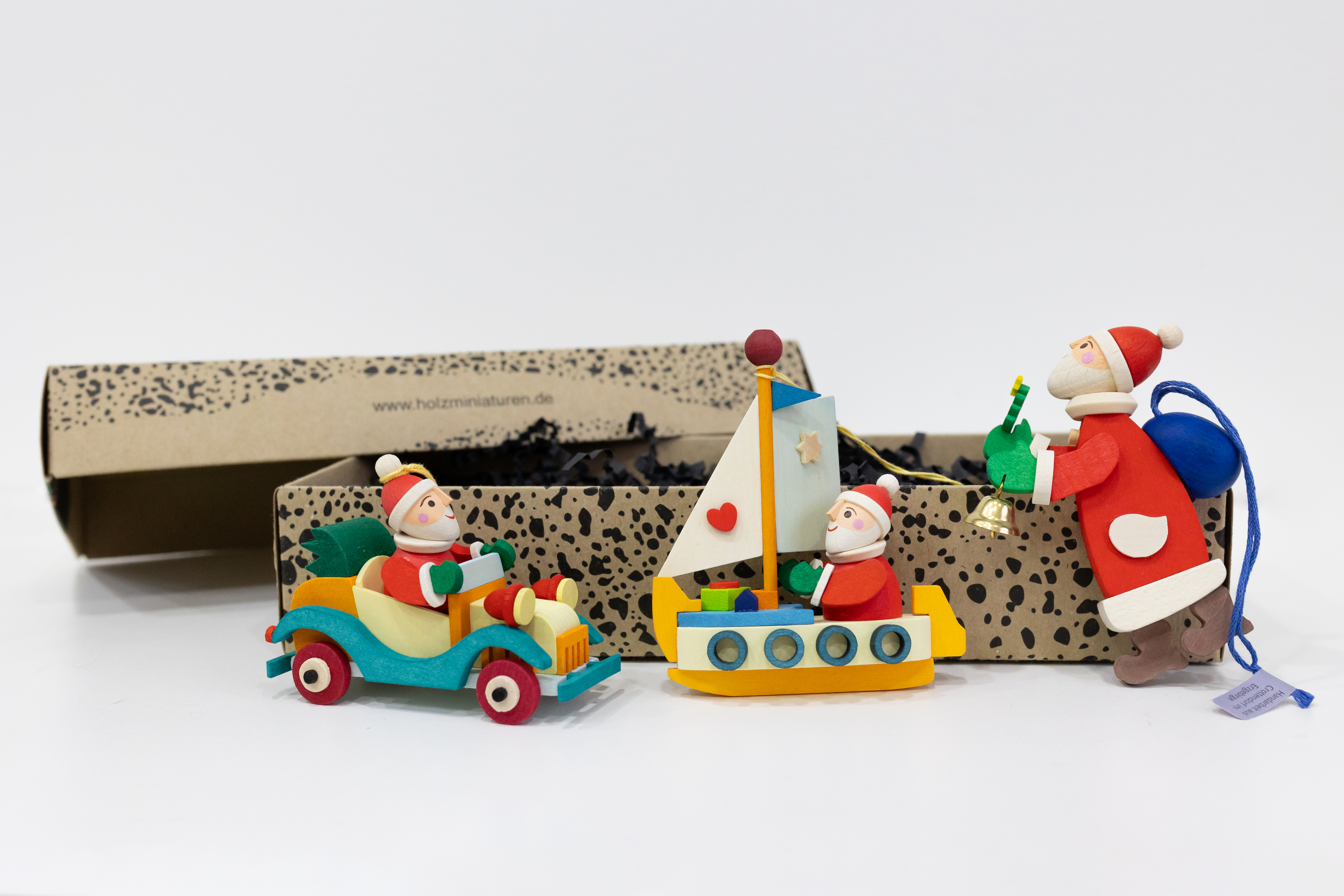 Mit handgefertigten Stücken aus unserer Manufaktur drücken Sie Ihre volle Wertschätzung aus – sei es zum Geburtstag, zur Geburt oder natürlich zum Weihnachtsfest. Jeder Geschenkkarton wird von uns fertig als Geschenk dekoriert versendet.