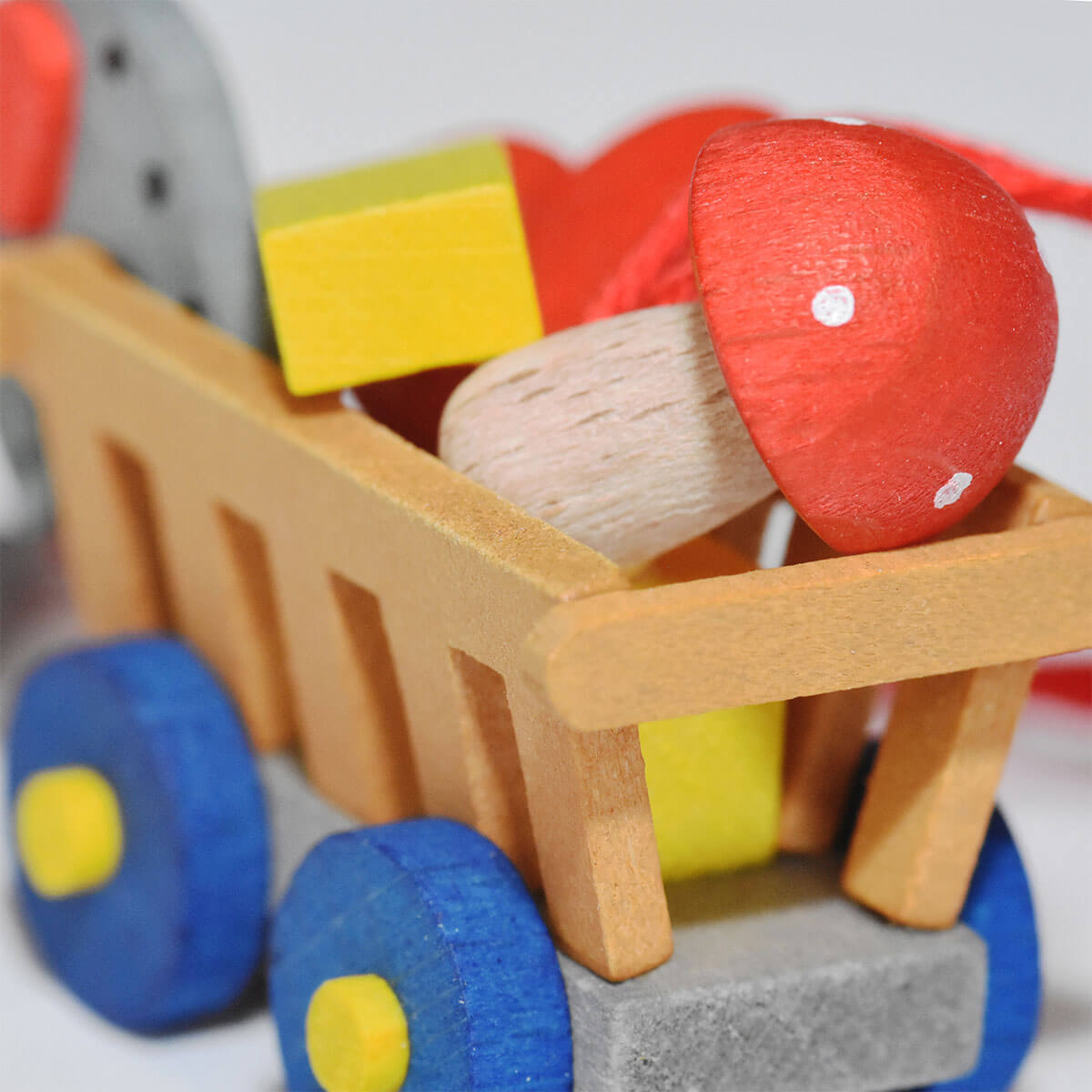 Der reich bestückte Glückswagen mit seinen handbemalten Details ist unser Glücksbringer für den Weihnachtsbaum – und dass bei einer Größe von gerade einmal 5 cm. Dieser Baumbehang eignet sich aufgrund seiner Größe nicht nur für den Tannenbaum, sondern auch hervorragend für einen Weihnachtsstrauß oder als Geschenkanhänger auf einem größeren Paket. Der Anhänger ist mit einem roten Faden zum Aufhängen versehen.