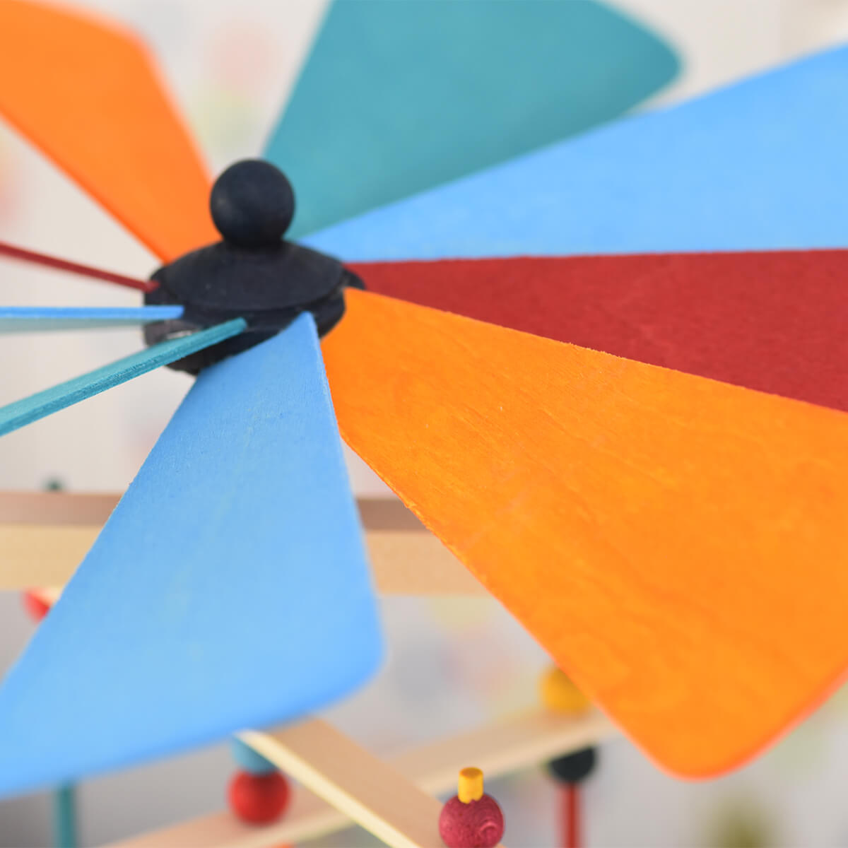Wir fertigen die komplette Pyramide aus Bergahorn. Die verwendeten Farben enthalten besonders hochwertige und lichtechte Pigmente, welche dauerhafte Brillanz und Leuchtkraft garantieren. Sie sind nach der strengen DIN EN71 Richtlinie für Spielzeuge zertifiziert, natürlich ungiftig und speichelecht.