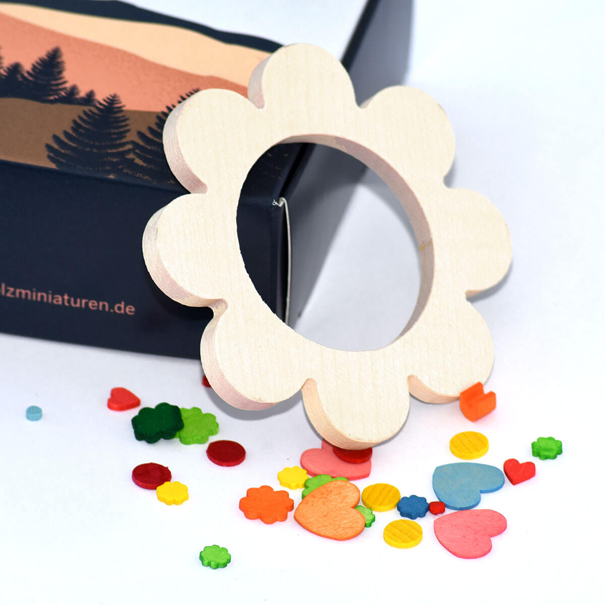 Die Wunderblume gilt nach einer alten Sage als eine wunderschöne, strahlende Blume – so einzigartig und farbenfroh wie Ihr es Euch nur ausmalen könnt. Und genau die haben wir hier für Euch – gestaltet Eure eigene Wunderblume mit einer Vielzahl an farbenfrohen Holzteilen. Die Blume lässt sich von beiden Seiten bekleben und dekorieren. Ihr könnt oben einen Aufhänger aus Holz anbringen. Hier einfach einen kleinen Faden durchfädeln, verknoten und am Frühlingsstrauß oder in Eurem Kinderzimmer aufhängen.