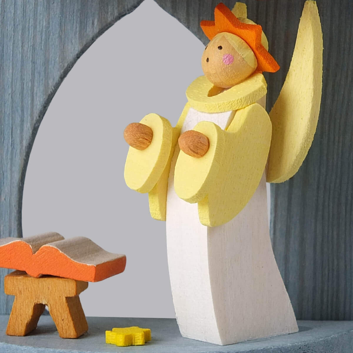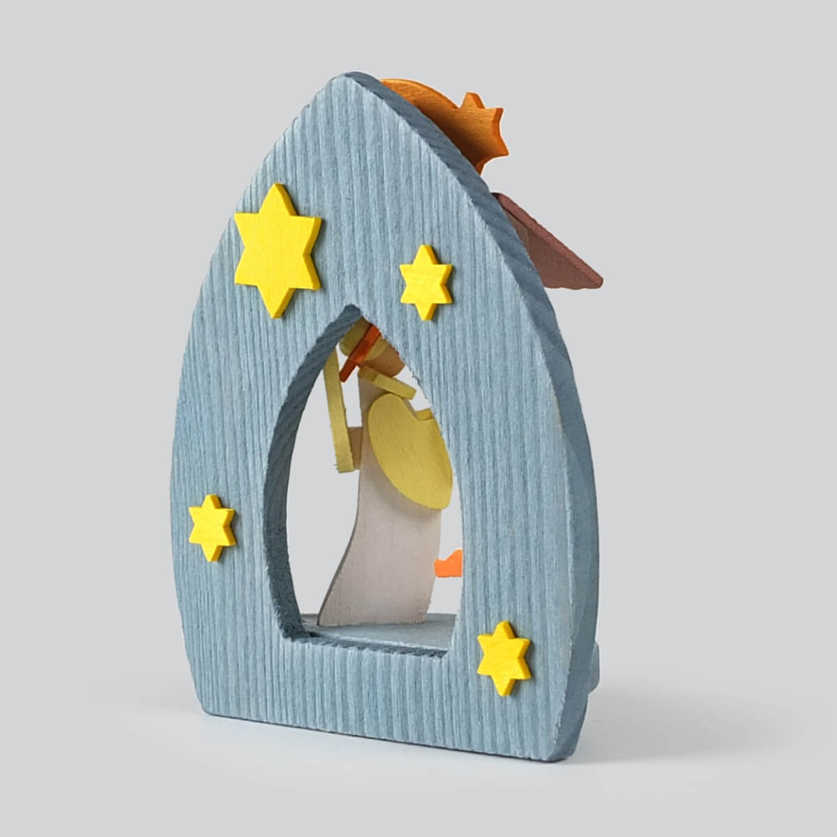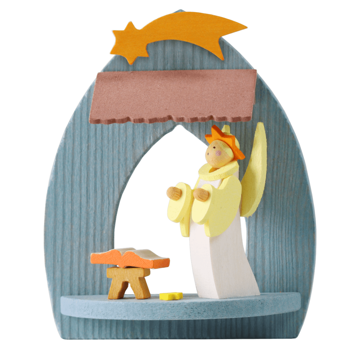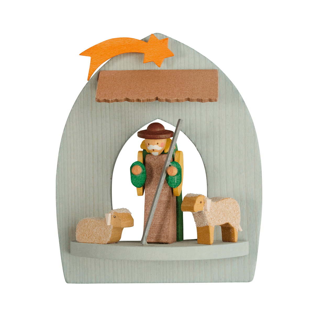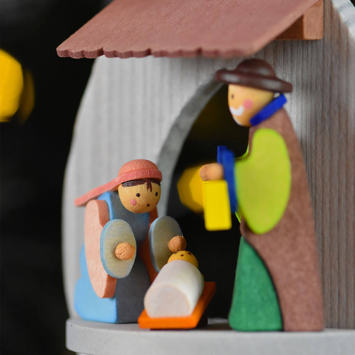 Die sechs verschiedenen Motive sind beliebte Sammelobjekte: Neben der Szene mit Maria, Josef und dem Jesuskind umfasst die Serie einen Schäfer sowie die drei Weisen Caspar, Melchior und Balthasar und einen Verkündigungsengel. Auf kleinstem Raum wird mit jedem Motiv eine wunderschön farbenfrohe Szene dargestellt. Leuchtende Farbigkeit, makellose Verarbeitung und hohes handwerkliches Geschick vollenden das wertvolle Holz zu einem kleinen Schmuckstück erzgebirgischer Volkskunst.