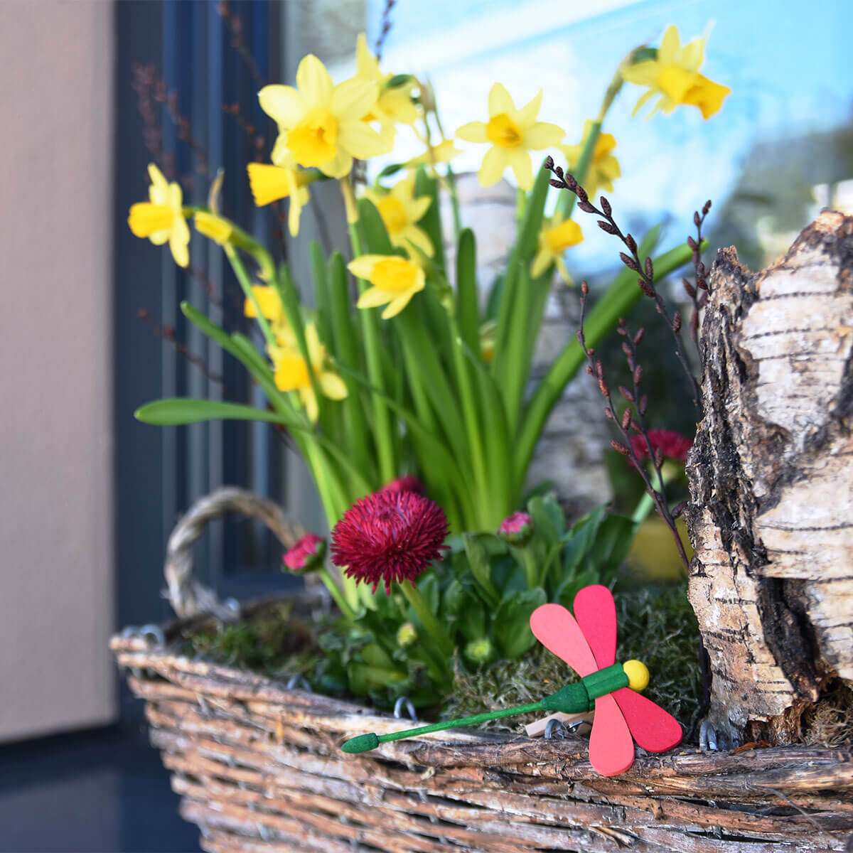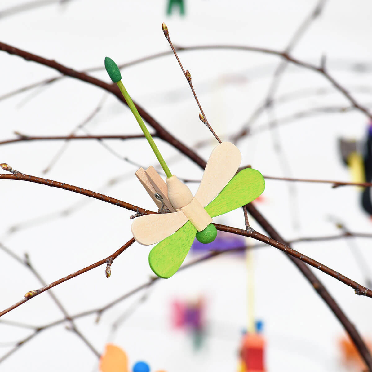 Erzgebirgisches Kunsthandwerk gibt es nicht nur zur Weihnachtszeit. Zum Sortiment unserer Manufaktur zählen darum nicht nur Weihnachtsdekorationen, sondern auch zahlreiche Stücke fürs ganze Jahr. Diese ganz ungewöhnliche Libelle mit einer Größe von ca. 90 mm ist ein Blickfang an jedem schönen Frühlingsstrauß. Aber auch als Glücksbringer an einem Geschenk sind die von Hand gefertigten Stücke ein Hingucker. Erhältlich sind die Libellen, welche rückseitig mit einer kleinen Klammer versehen sind, in zwölf verschiedenen Farbvarianten.