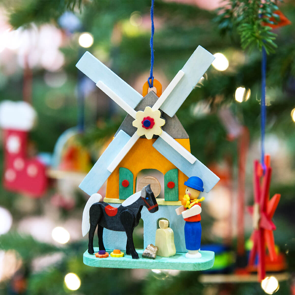 Eine Sagen- und Märchenkultur ist schon seit jeher tief im Erzgebirge verwurzelt. Mit unserer Märchenedition greifen wir dabei jährlich ein neues Motiv zum Sammeln auf. Zur Edition zählt auch ein Baumanhänger mit dem Motiv des „Hans im Glück“. Das stolze Pferd und auch der Goldklumpen sind neben der farbenfrohen Mühle zu entdecken. Alle Figuren sind von Hand bemalt. Der Anhänger mit seinen unzähligen Details ist ein beliebtes Geschenk – und das nicht nur in der Weihnachtszeit. Als Mitbringsel zum Geburtstag, für die (Enkel-) Kinder oder als Glücksbringer für viele Gelegenheiten ist er eine tolle Geschenkidee.