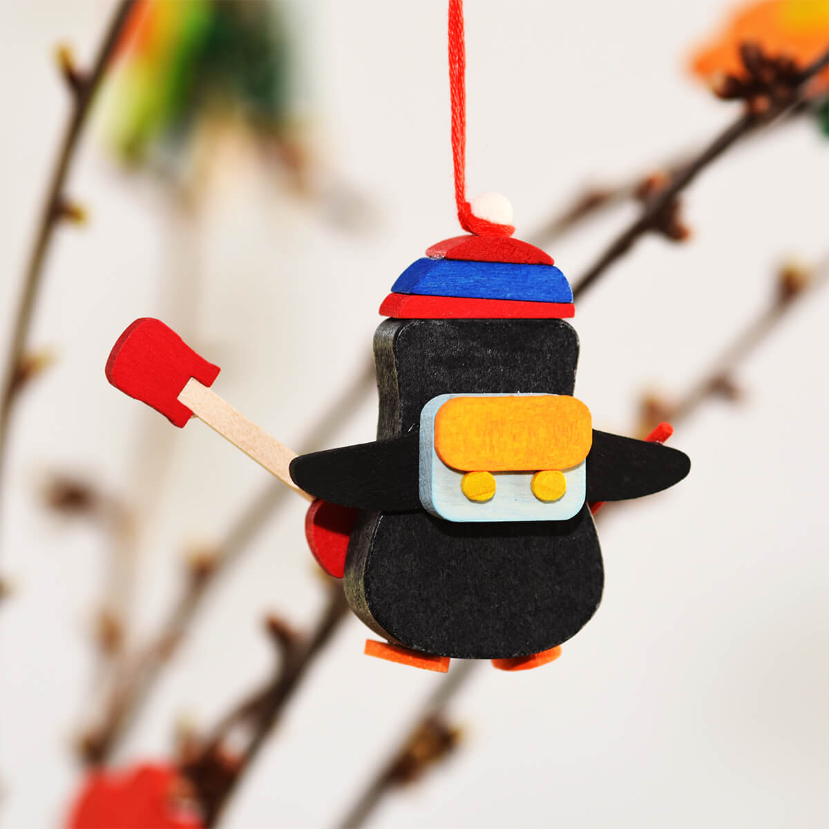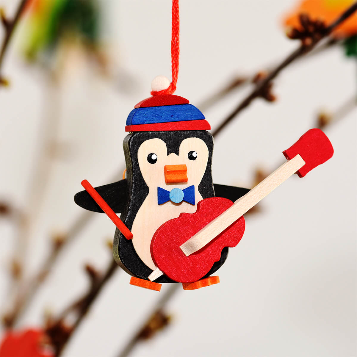 Da fangen nicht nur Kinderaugen an zu strahlen! So ein süßer, von Hand bemalter Pinguin und das auch noch aus dem Erzgebirge? Gibt´s nur von uns – und das sogar in sechs unterschiedlichen Varianten zum Sammeln. Wir fertigen die Pinguine zum Anhängen mit den Instrumenten Trompete, Trommel und Baß sowie mit Farbpalette, Vögelchen oder Baum. Und jeder hat auch noch seine ganz eigene Bommelmütze auf – Süßer kann Erzgebirge wirklich nicht werden! Jeder Pinguin ist mit einem roten Faden zum Aufhängen versehen.