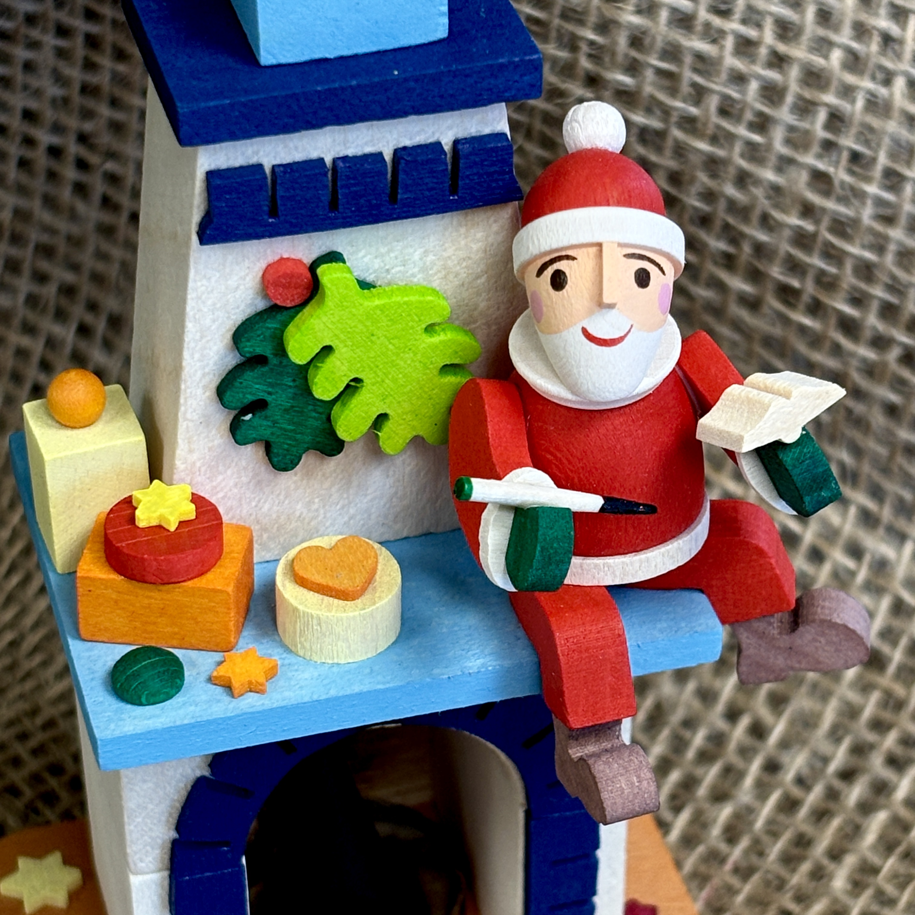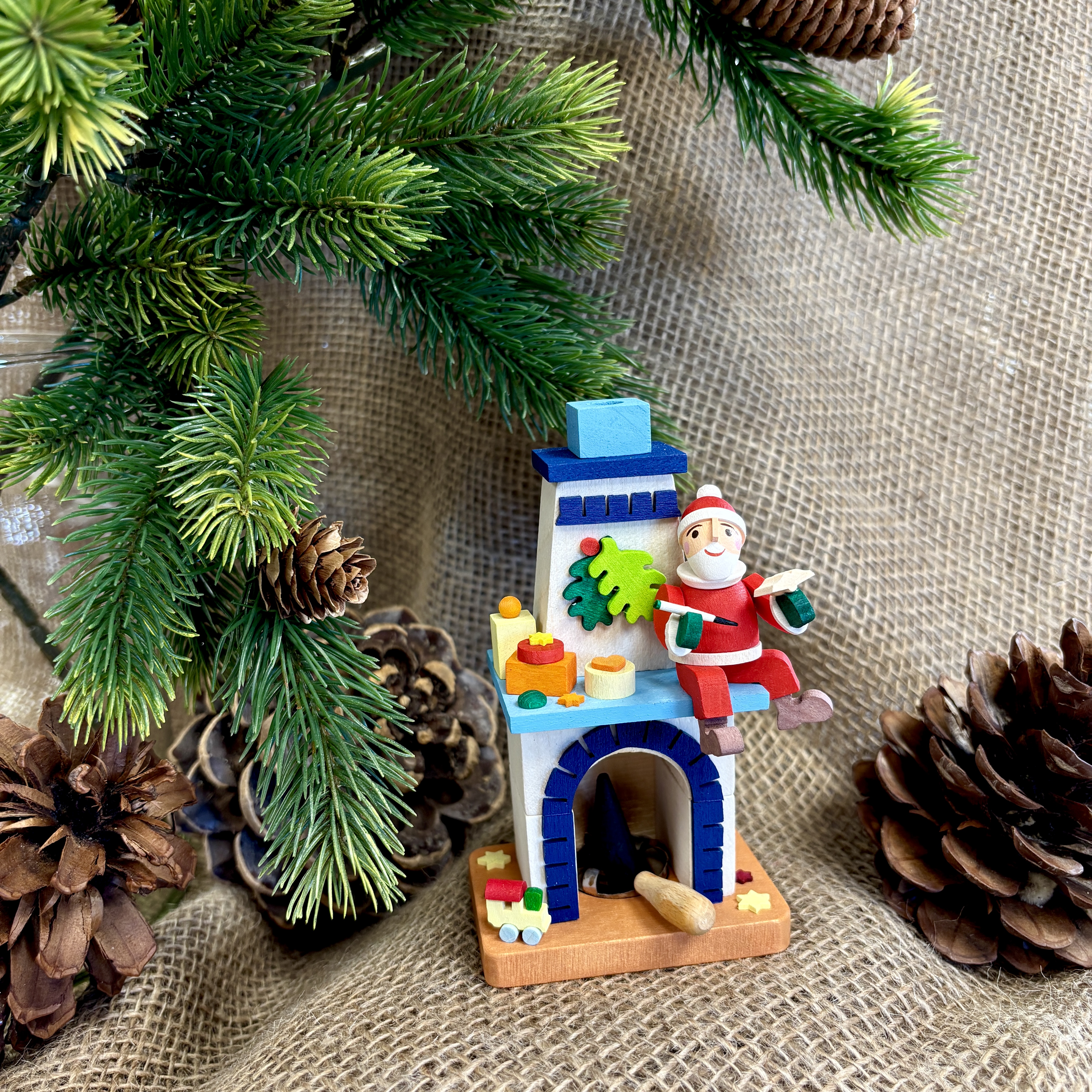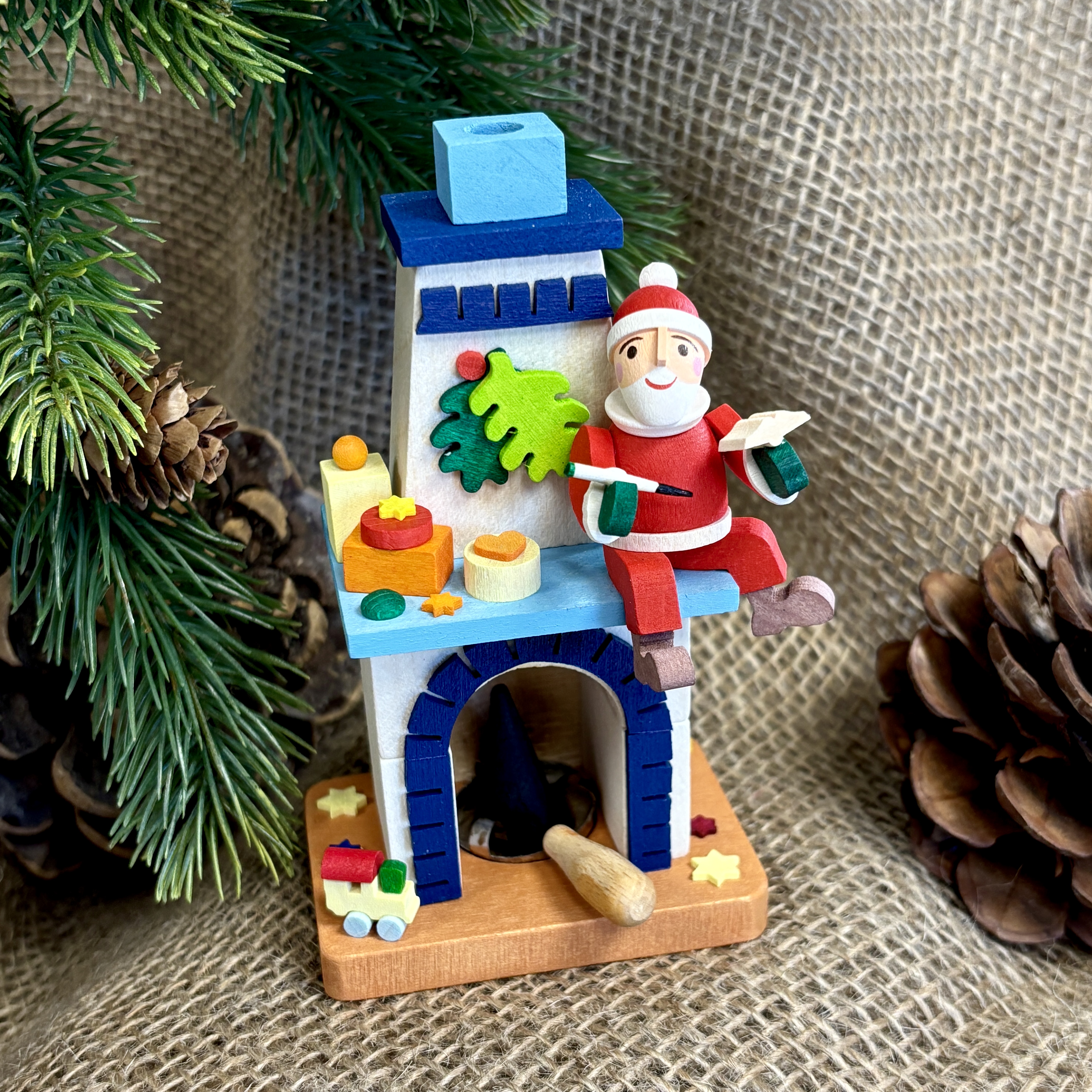 Der farbenfrohe Räucherkamin mit Weihnachtsmann ist immer wieder ein schönes Geschenk, nicht nur zur Weihnachtszeit – sei es für einen lieben Freund, die (Enkel-)Kinder oder als originelles Mitbringsel. Mit unzähligen liebevollen Details und handbemalten Figuren erwerben Sie einen hochwertigen und handgefertigten Artikel aus unserem Sortiment.