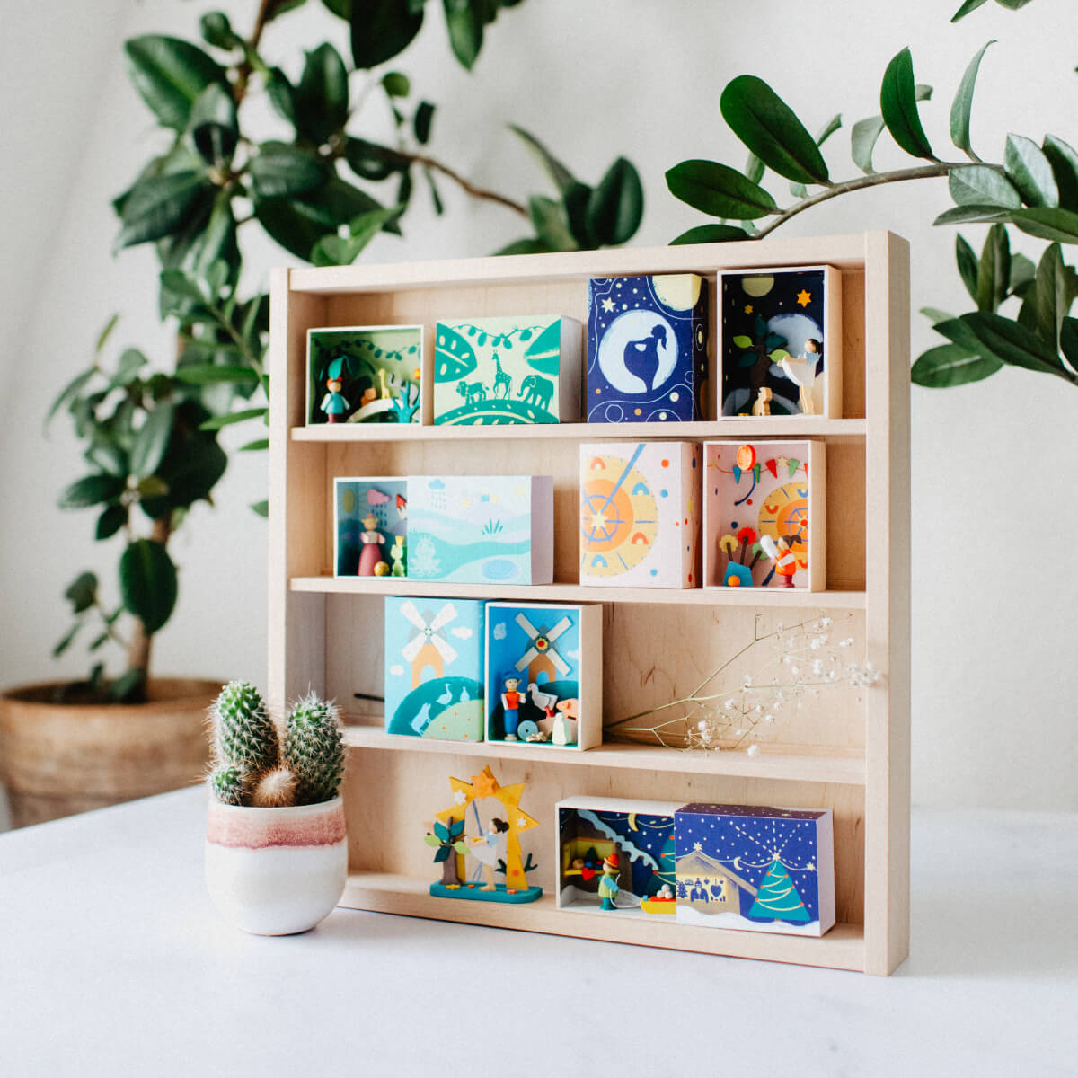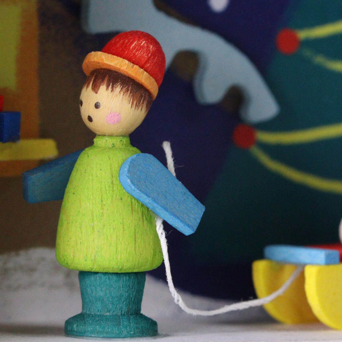 Die 3D Grußkarte aus Holz entsteht in aufwendiger Handarbeit. Unzählige Arbeitsschritte sind nötig, bis die illustrierte Szene in die Streichholzschachtel aus Ahornholz eingesetzt wird. Sicher verleimt erstrahlen dann die miniaturgroßen Figuren und machen Lust auf die wohl schönste Zeit des Jahres. Das Traumkästchen „Weihnachtsmarkt“, handgefertigt und -bemalt, besteht aus nachhaltig angebautem Ahornholz. Die einzelnen Holzteile sind eingefärbt mit lichtechten Farbpigmenten in einer Beize auf Wasserbasis. Übrigens finden Sie in unserem Online-Shop neben weiteren Traumkästchen auch andere Geschenkideen zum Weihnachtsfest, wie die Spieldose Christgeburt, das Räucherhäuschen Weihnachtsmann oder die Teelichtpyramide mit Schneemann.