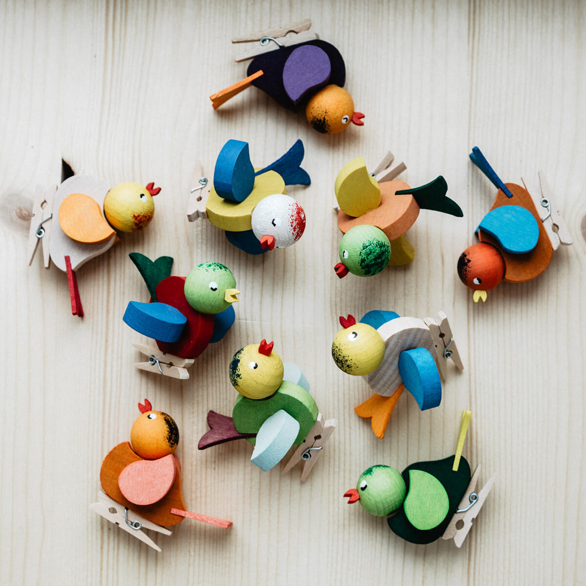 Unsere handbemalten Vögelchen aus Holz sind dabei eine besonders beliebte Deko – in einer unnachahmlichen Vielfalt können Sie sich einen tollen Blickfang für den Frühjahrsstrauß ins Haus holen. Auch fürs Osterfest oder den gesamten Sommer hindurch sind diese von Hand bemalten Stücke ein echter Eyecatcher. Ganze zwölf unterschiedlichen Farbkombinationen sind bei uns erhältlich. Süßer kann Erzgebirge wirklich nicht werden! Jeder Vogel ist mit einer Mini-Wäscheklammer zum anknipsen versehen.